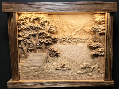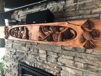 At Chiseled Outdoors we specialize in HAND CARVED relief woodcarvings ranging from unique WALL ART SCENES & SIGNS to large custom FIREPLACE MANTELS.